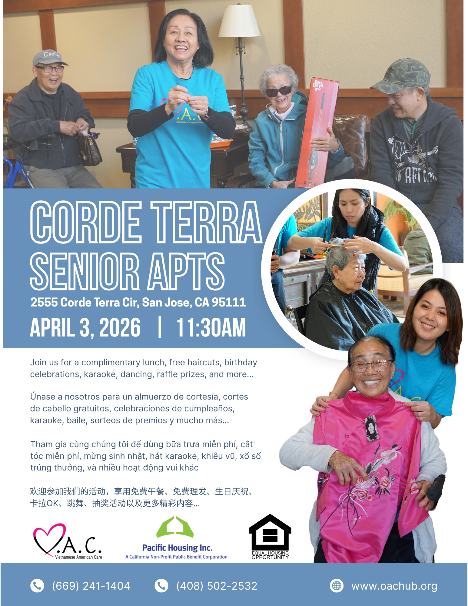 During the weekend of April 18–19, at the Vesak (Buddha’s Birthday) celebration at Lake Cunningham Park, the Councilmember’s office and OAC/VAC will host two community booths. Volunteers will be on-site assisting attendees with Section 8 housing applications and Medi-Cal enrollment, helping families access essential services.