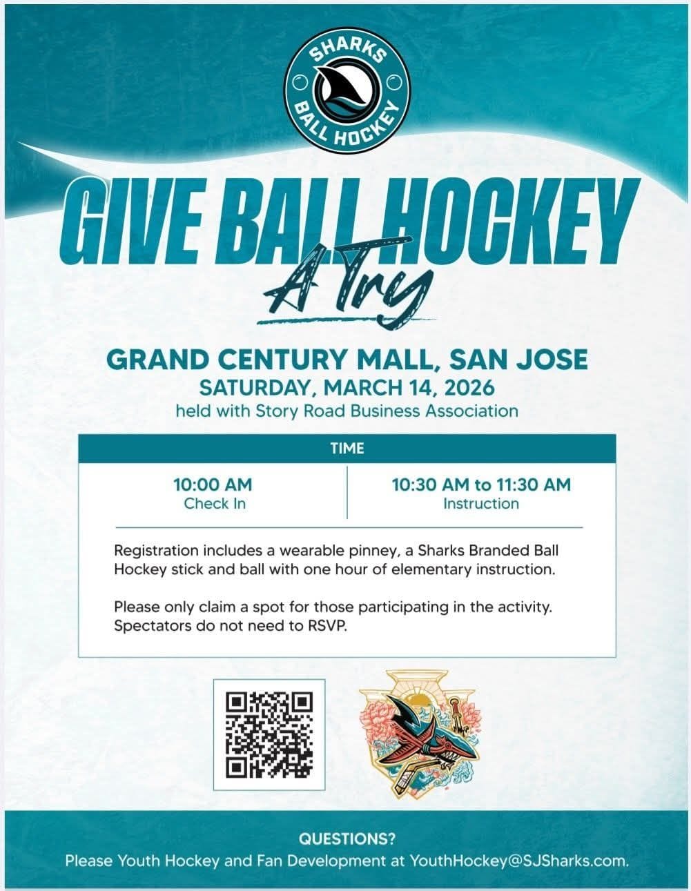 For the first time, a special community event will be held at Grand Century Mall through a collaboration between the San Jose Sharks and the Story Road Business Association.