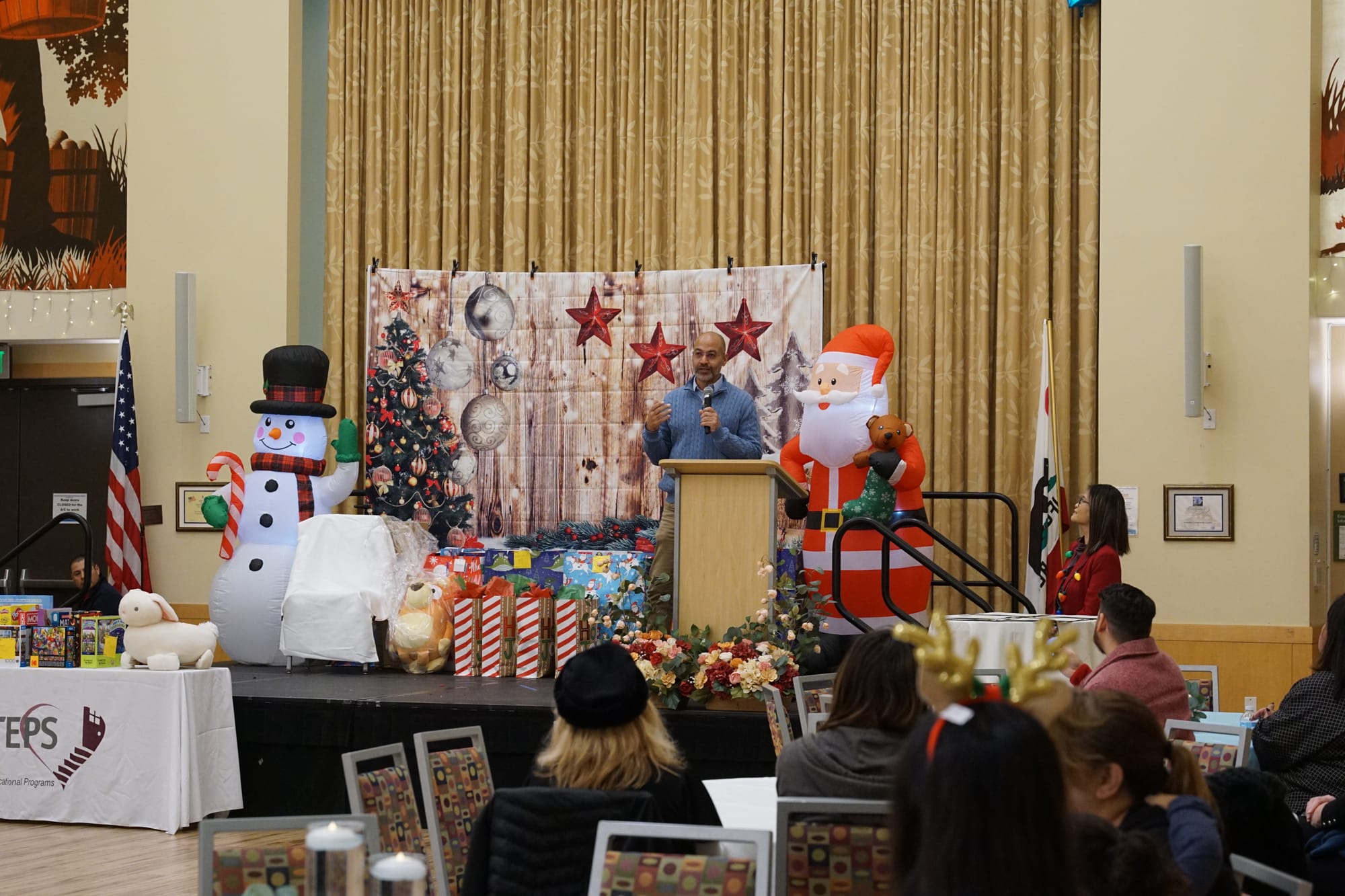 The success of the FSS Holiday Gala was made possible through the generous support of sponsors and partners. Councilmember George Casey played a key role by sponsoring the venue and attending the event in person, demonstrating strong support for the families and the FSS program. Additional support came from San Jose Sharks Foundation, Santa Clara County Housing Authority, LifeSTEPS, and Vietnamese American Care. Their combined contributions helped create a welcoming and meaningful event for all attendees.