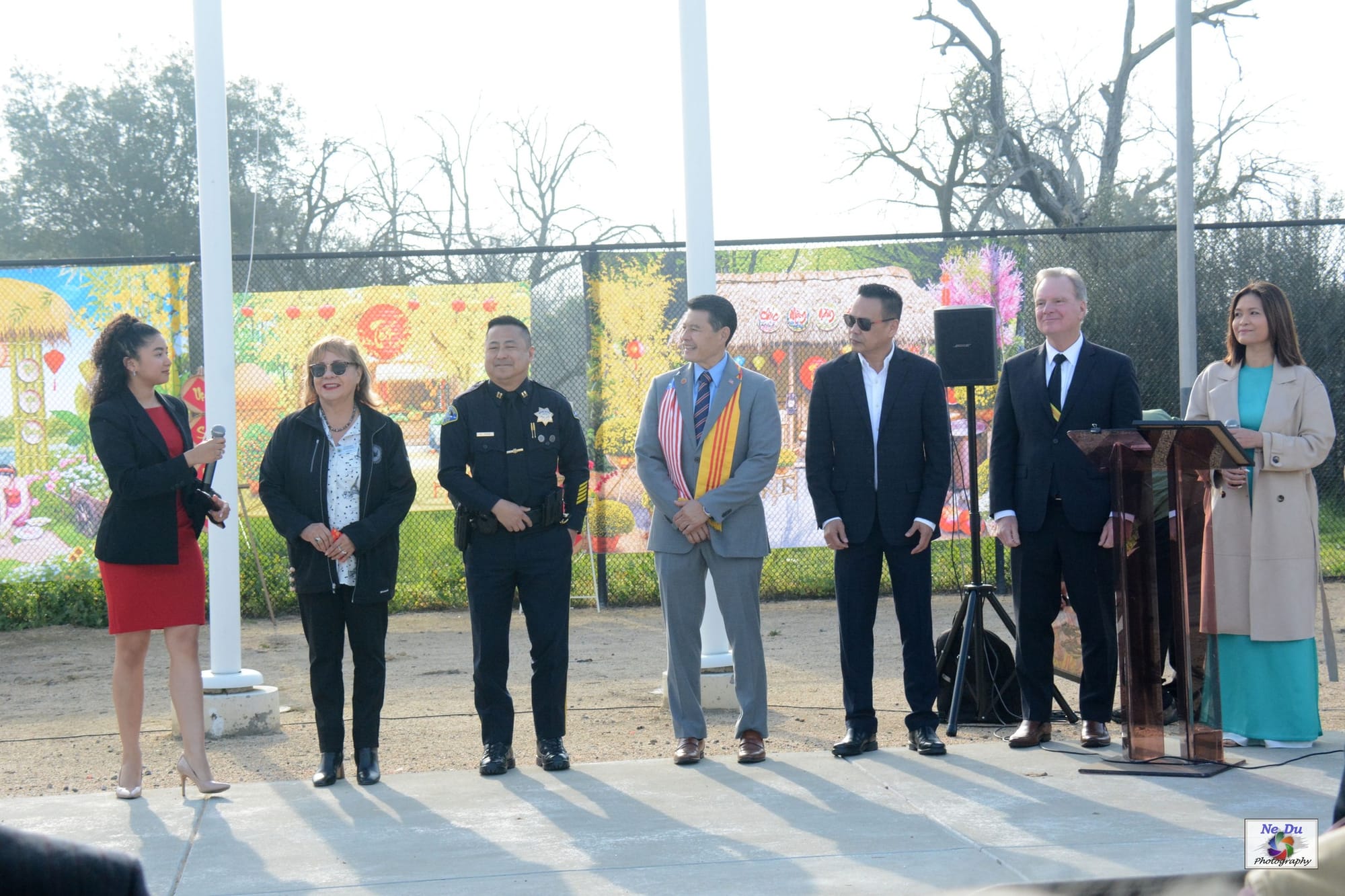 Ms. Queenie Ngô introduced distinguished guests, including California State Senator Dave Cortese (represented by Ms. Phương Nguyễn), San José City Councilmember Biên Đoàn (District 7), Milpitas Mayor Carmen Montano, School Board Trustee Flanklink McKinley Hồng Hà Hoàng, a representative for Congressman Sam Liccardo, Ms. Victoria Thúy Vy McDowell, Santa Clara City Councilmember Ken Park, and San José Police Department Captain Ken Trần.