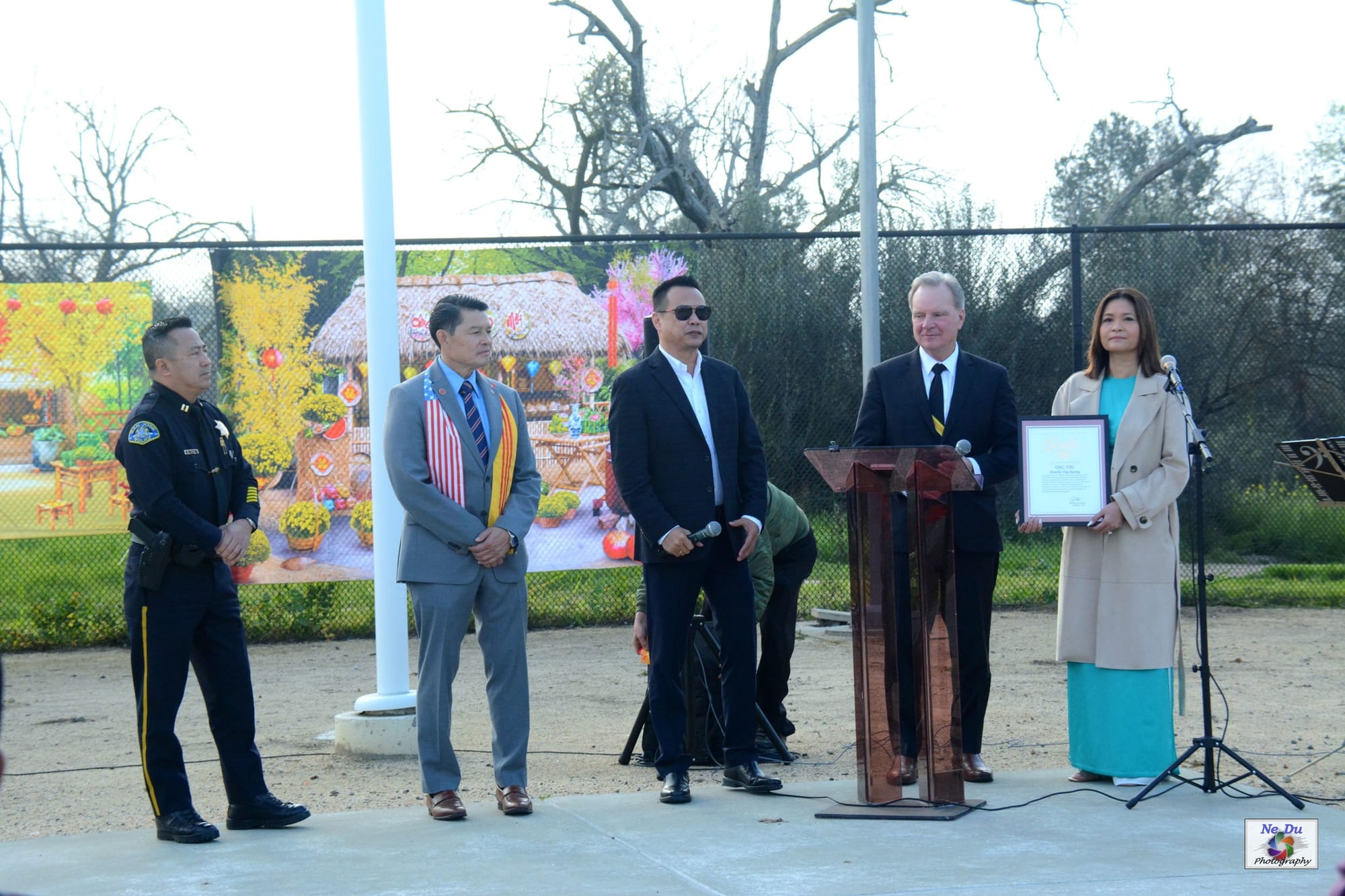 Mr. Hoàng Thưởng later invited all sponsoring organizations and supporters to present Councilmember Biên Đoàn with a commemorative photograph of the “Thank You, America” Veterans Memorial at the Vietnamese Heritage Garden. Councilmember Biên Đoàn expressed his appreciation to predecessors and key contributors to the memorial’s completion, including Senator Dave Cortese and former County Supervisor Cindy Chavez.